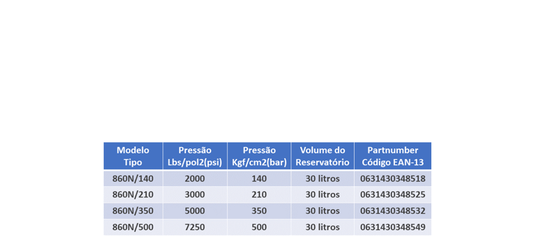 Bomba de Teste hidrostático NOVA FREMI 860N/210. 30L. 210 bar. Part Number 0631430348525