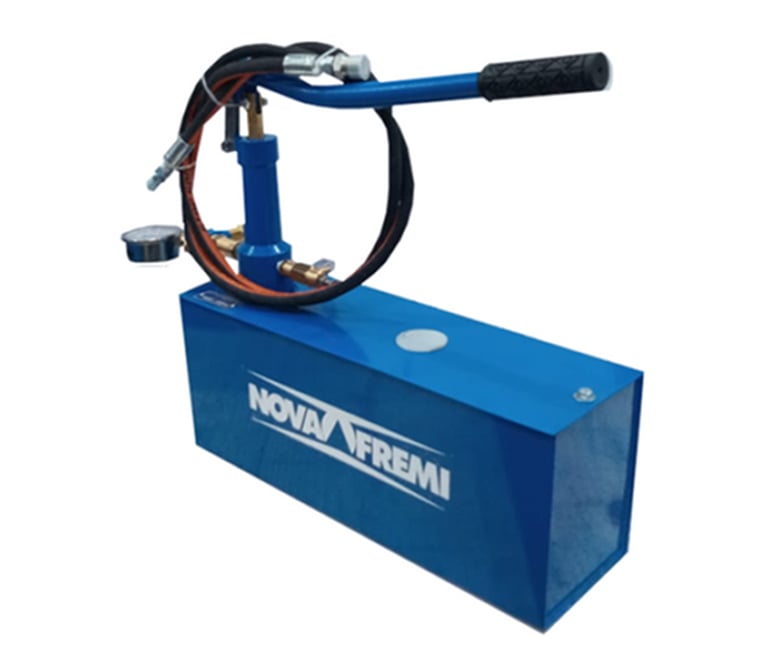 -Caixa metálica em aço carbono – Volume 30 litros. -Corpo: Cilindro em aço carbono. -Tubo de sucção com duplo sistema de válvulas na entrada. -Válvula de segurança e regulagem de pressão. -Válvula de retenção. -Válvula de bloqueio e alívio de pressão. -Manômetro glicerinado em caixa de inox. -Kit-mangueira de alta pressão com terminais de ligação. -Conexão de saída: R 1/2 NPT. -Acionamento manual por meio de alavanca. -Dimensões aproximadas: C 600 x L 400 x A 800 mm. -Peso aproximado: 32 – 35 kg. -NCM: 84132000. -Fluidos utilizáveis: água, óleo lubrificante, glicerina. -Vazão aproximada: 0,5 a 1,0 l/min, dependendo da capacidade de pressão selecionada. -Marca: NOVA FREMI. -Fabricante: Metalúrgica Nova Fremi Ltda.