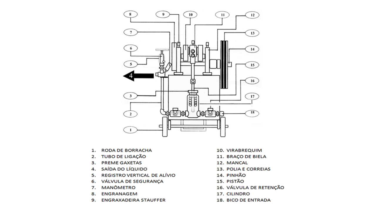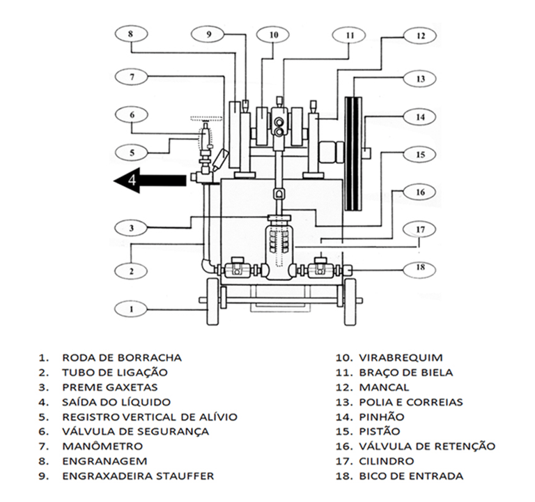 -Caixa metálica em aço carbono – Volume 58 litros. -Corpo: Cilindro em aço carbono. -Válvula de entrada. -Válvulas de retenção. -Válvula de segurança e regulagem de pressão. -Válvula de bloqueio e alívio de pressão. -Manômetro glicerinado em caixa de inox. -Kit-mangueira de alta pressão com terminais de ligação. -Conexão de saída: R 1/2 NPT. -Acionamento: motor elétrico trifásico - 220/380 v - de 5 ou 7,5 cv - 60 hz , correias e polias redutoras. -Chave de partida "Liga-Desliga) -Dimensões aproximadas: C 900 x L 500 x A 1000 mm. -Peso aproximado: 140 kg. -NCM: 84138100. -Fluidos utilizáveis: água, óleo lubrificante, glicerina. -Vazão aproximada: 0,6 l/min. -Marca: NOVA FREMI. -Fabricante: Metalúrgica Nova Fremi Ltda.
