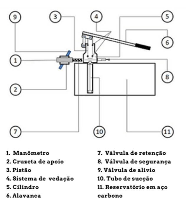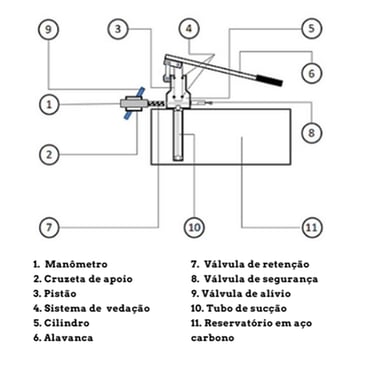 Bomba manual para teste hidrostático. Modelo 850N Montada em reservatório de 07 litros