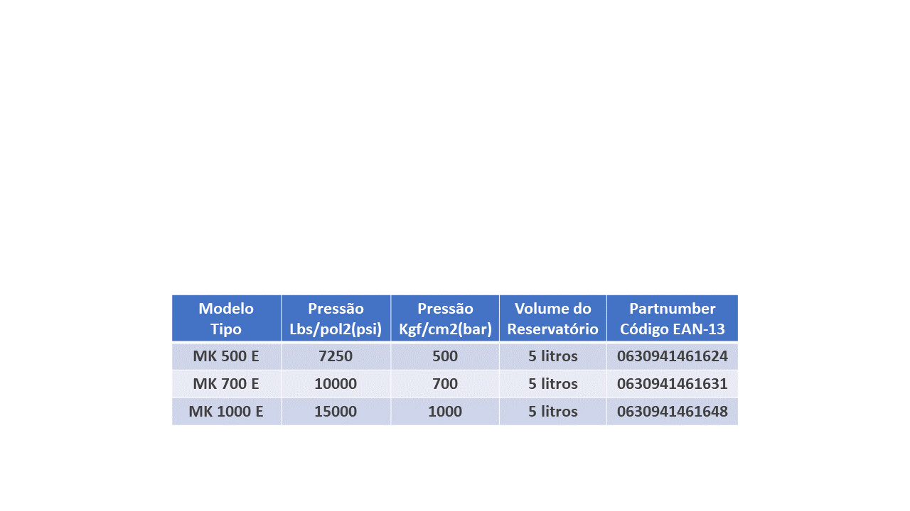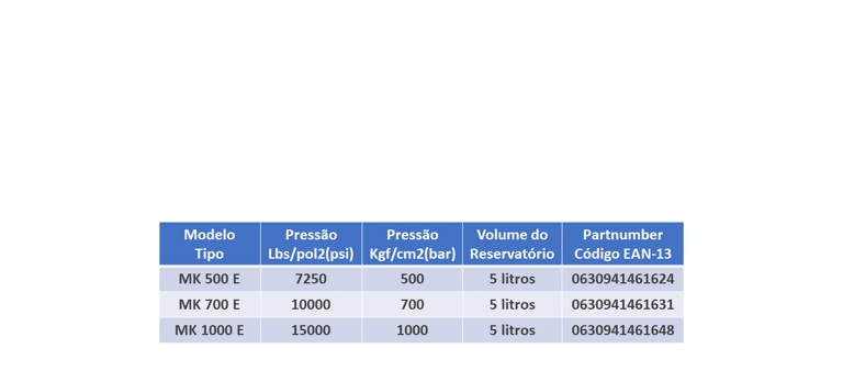 Bomba elétrica para teste hidrostático. Modelo MK-E Montada em reservatório de 5 litros